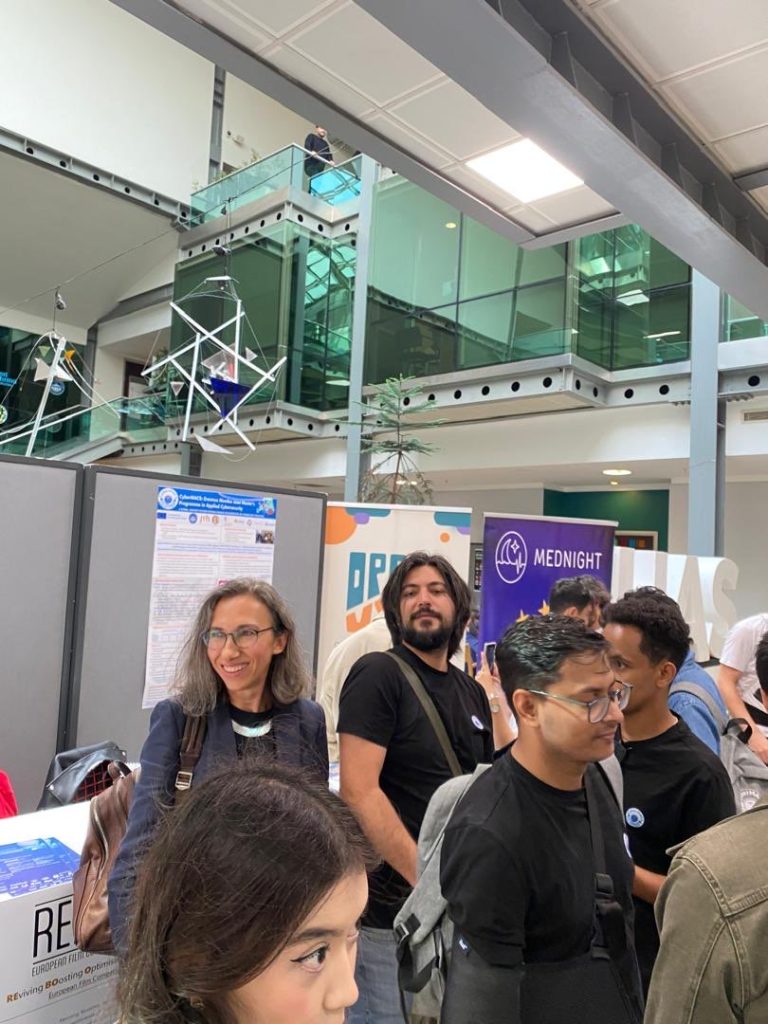 A dedicated poster representing the CyberMACS project was displayed within this space. The poster presents the program’s mission, mobility opportunities, international partnerships, and impact in advancing cybersecurity education and research across Europe and beyond.